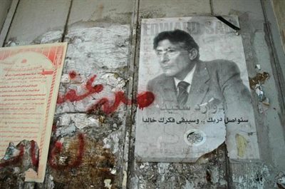 约旦河西岸以色列隔离墙上张贴的萨义德纪念海报