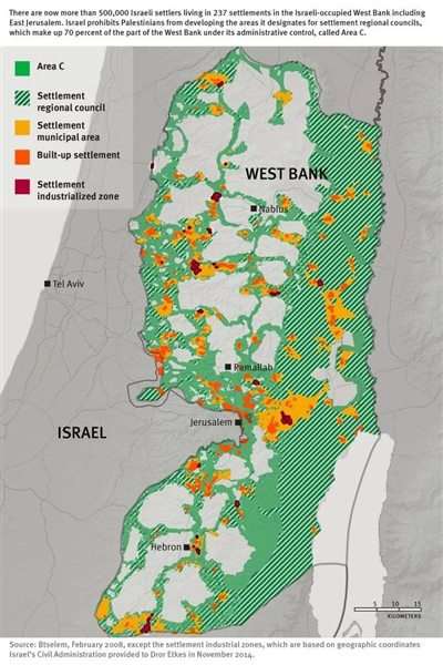 国际法对于种族隔离的定义有助于理解奥斯陆进程引发的政治和地理分裂。奥斯陆进程使以色列能够通过一些间接统治的方式来重新组织定居者在被占领土地上的殖民统治,以此作为对直接军事统治的一种补充。奥斯陆协议建立了巴勒斯坦权力机构(Palestinian Authority,简称PA), 作为加沙地带和西岸部分地区(不包括东耶路撒冷)巴勒斯坦人的半自治管理机构。以色列分割了被占领的土地,有效地将约旦河西岸与加沙地带分开,并将东耶路撒冷与西岸其他地区隔离。但巴勒斯坦的分裂在西岸体现得最为明显,以色列从巴勒斯坦的城市中心撤军,用检查站、路障、栅栏和围墙包围这些地区,对占领地区实施全面的军事“封锁”,同时引入许可证制度和隔离道路网来规范巴勒斯坦人的行动,从而将约旦河西岸分裂为数十块孤立的飞地。奥斯陆协议授予巴勒斯坦权力机构对飞地(A 区和 B 区)内民政事务的有限自主权,例如教育和城市规划,这些飞地合计占西岸总面积的40%,作为交换,巴勒斯坦权力机构将与以色列军方合作镇压抵抗运动。与此同时,以色列保留对西岸剩余60%(C区)的完全管辖权以及对整个领土的最终主权。尽管在2005年正式“撤离”了加沙地带,但以色列在过去的十五年内一直包围和围困该地区,同时多次进行致命的军事入侵。在约旦河西岸,以色列的新殖民战略包括将巴勒斯坦人口集中到A区和B区的飞地内,并对C区的巴勒斯坦土地殖民化。例如,在第二次巴勒斯坦大起义(译者注:即阿克萨群众起义,第二次因提法达)期间(2000年-2005年),以色列设立了500个军事检查站,使用路障和沟渠孤立巴勒斯坦社区,将村庄从邻近城市分离出来,并通过强制实行军事宵禁和限制城市间的移动从而加强全面“封锁”。六年以来,巴勒斯坦人很少离开新建立的微型封闭区域。