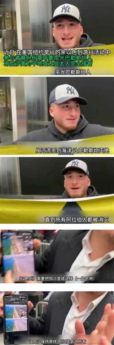 这不是我说的,而是那些手里挥舞以色列旗帜的人说的。他们说的是“杀光巴勒斯坦人,从河流杀到海洋,让巴勒斯坦人灭绝,直到所有阿拉伯人都被消灭”“(以色列)需要把加沙变成这样(一片平地),或让加沙保持原样,但归犹太人所有”“炸毁所有东西,我们得夷平加沙,把它从地图上抹去”“我们需要把他们杀光”“夷平它,夷平加沙”,看到没,这就是以色列无法无天的“民意基础”,在这样的“民意”裹挟下,一个哈马斯怎么可能满足以色列的胃口?
