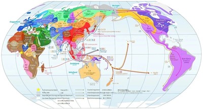 上图中中东、高加索、土耳其、叙利亚、阿拉伯地区是J2单倍型型类群最密集区域,紫色的Q单倍型类群则密布北美和南美地区。