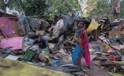 因为印度政府居然把新德里的一处距离峰会举办地点不到一公里、占地90多公顷的贫民窟在事先没有任何通知的情况下,直接给暴力拆毁了。