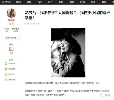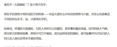 这时,我们的耳边自然会想起公知龙应台的那句“我不在乎大国崛起,只在乎小民尊严”。