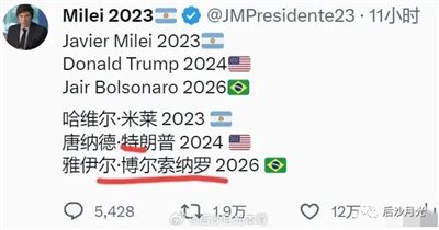 “疯子”米莱当选阿根廷总统后,也是真够狂的,他在得意忘形地指定美国和巴西下任总统。