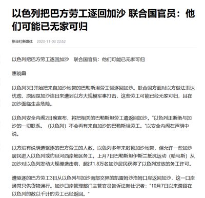 如今这种脆弱的和平被打破,仇恨已深,恼羞成怒的以色列执政当局,恨不得把加沙的巴勒斯坦人赶尽杀绝。这时,还幻想靠妥协换以色列发慈悲,难道要把正在抵抗的哈马斯战士绑上献给以军吗?如果连这唯一的防身匕首都没有了。只怕,明天加沙人不是去以色列的建筑市场打工,而是要去集中营报道了。