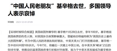 美国前国务卿基辛格在纽约时间2023年11月29日晚去世了,对此我国外交部门对这位和中国打了半个世纪交道的外交家表示哀悼,在我国互联网的讨论之中,很多人也感慨一位优秀的战略家离开了这个世界,一个有着远见卓识的对手从此不在,这种态度甚至是跨越政治立场的,虽然用词不同,但是国内大多数舆论对基辛格的去世表示了礼节性的尊重。