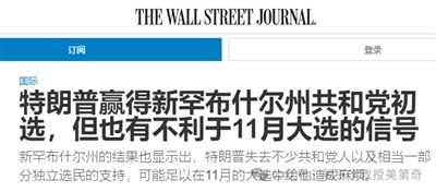 连胜两场,除了黑利本人之外,特朗普在所有美国人眼中,已经锁定了共和党总统候选人资格。最喜欢丧事喜报的华尔街日报都充满酸葡萄的说:特朗普虽然赢了初选,但是这么得罪人的赢法,对11月大选大大不利……