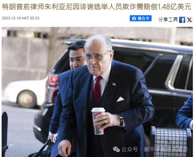 拜登自知胜选不大,已经开始玩起了各种盘外招,甚至连取消特朗普总统候选人资格这种事都做出来了,特朗普身边的人有一个算一个都遭到了检举,特朗普的铁杆粉丝,纽约前市长朱利亚尼甚至被判诽谤,罚金超过1.5亿美元,马上破产。