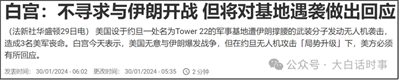 1月29日,白宫表示美国无意与伊朗爆发战争,但这次袭击毫无疑问是局势升级,美方有必要做出回应。