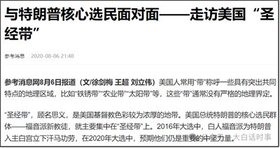 特朗普支持者里,福音派新教徒是核心选民群体,其中主要集中在圣经带。