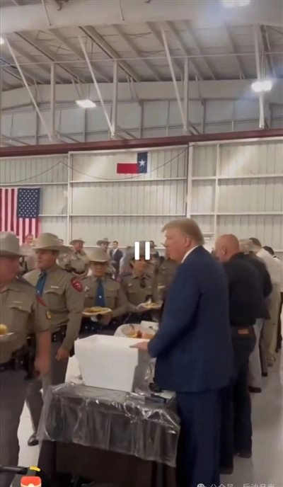 昨天懂王赶到德州看望了守卫边境的国民警卫队,还在军营食堂里亲自给士兵们打饭,对合影请求来者不拒。
