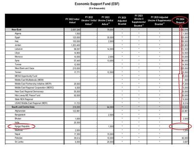 与此同时,预算还包含了一个相当奇怪的理由:“美国的援助将旨在消除俄罗斯在乌克兰的战事对吉尔吉斯所造成的持续影响,包括货币波动和食品进口价格上涨而导致的经济困难,尤其是人口中最弱势群体所面临的困难。”