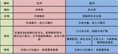 大约从2000年前后,人们逐渐更多地将红色赋予持相对保守思想的共和党,而蓝色则成了民主党的代表。但实际上,像特朗普这样的共和党保守派,以及美国民众中的很多保守派白人(俗称“红脖子”),他们才是美国真正的“原教旨自由主义者”,他们信奉的是美国建国之初的“美国精神”,即丛林法则、弱肉强食、自己动手生产、反对大政府、笃信宗教,其实就是真正的“右翼”。因此他们反对民主党某些虚伪的“白左”做风,比如开放移民、毒品合法化、大搞LGBT、黑命贵等政治正确。