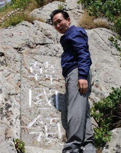 2012年,时任韩国总统李明博登上独岛宣示主权,还到了洪淳七刻下的“韩国领”三个字的岩壁旁照相留念。