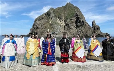 韩国人穿着民族服装到岛上拍照展示爱国情怀。