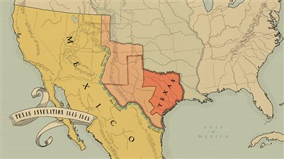 1845年美国宣布“孤星共和国”愿意加入美国的话,美国将承认格兰德河为其边境,同年得克萨斯成为美国的第28个州。