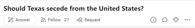 而在Quora上,“得克萨斯州应该脱离美国吗”这个问题下的网友也很鲜明地分成两派。