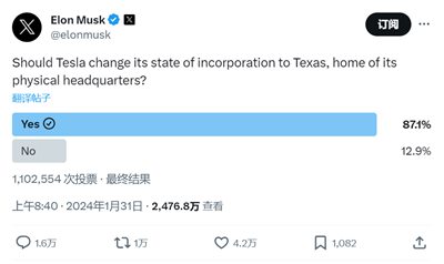 特斯拉是其应该将公司注册地改为其实体总部所在的“得克萨斯”?