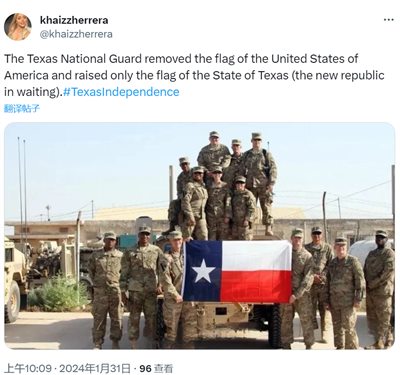有趣的是,现在的得克萨斯的国民警卫队已经在军营中降下美国国旗,只保留州旗,同时也是原“孤星共和国国旗”,联邦政府真要强行“收编”的话恐怕才真要出大事。
