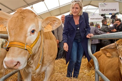 法国极右翼总统候选人玛丽娜·勒庞参加农业展会