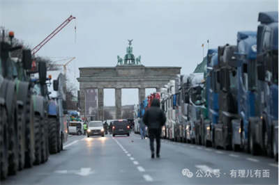 2024年一开春,德国农民继续去年底的抗议。1月8日,德国慕尼黑农民发起抗议活动,反对德国安佩尔联合政府计划削减汽车税补贴,现场抗议农民打出了“(德国)不是我的政府”口号。1月15日,约8500名德国农民驾驶6000余辆拖拉机占领首都柏林地标性建筑勃兰登堡门。