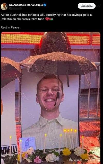 但美国民众也仍然有很多有良知的人,通过各种方式悼念布什内尔,反对以色列这种种族灭绝行为。
