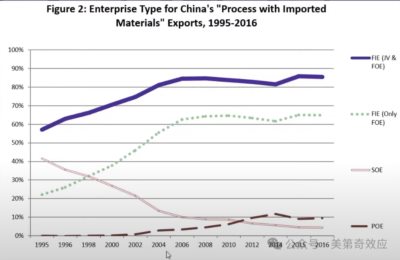 到2016年,中国高附加值出口60%控制在外资手中,这部分的利润全部留在了海外,而国内只赚到了一个加工费,即使出口的产品不是短裤而是高科技的手机或者电脑