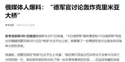 当地时间3月1日,“今日俄罗斯”电视台总编辑西蒙尼扬,突然公布了一段录音,录音内容居然是:两个星期前,有四名德国高级军官,讨论用他们的“金牛座”导弹,怎么摧毁克里米亚大桥!