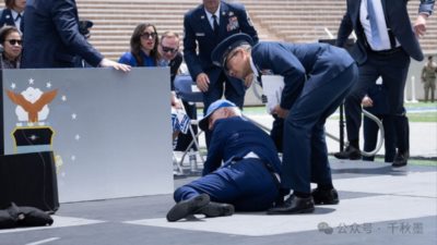 2021年3月,拜登在准备登上“空军一号”前往格鲁吉亚时两次摔倒,过后白宫将此归咎于“一阵不合时宜的风”。2022年6月,拜登在登机前往洛杉矶参加美洲峰会时,险些在舷梯上摔倒。2023年6月,在美国空军学院的毕业典礼上,西装革履的拜登在与毕业生握手后重重地摔在地上,并无法自己站起来,最终被一名空军军官和两名特勤局特工搀扶起来……