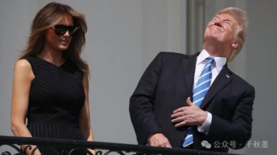 2017年8月,特朗普毫无科学常识地在未佩戴防护眼镜的情况下观看日食。