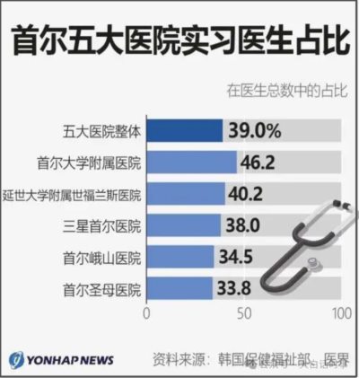 但韩国大型教学医院的工作人员里,有大约四成是实习医生。