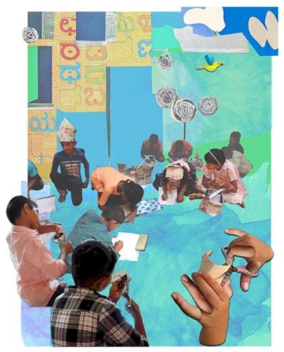 假如你是一个从未接触过科学知识的小孩,发现在卡纳塔克邦农村地区的一个BGVS节上有一个摊位摆放着一辆已被拆散的自行车。摊位上的老师说,如果你能把自行车组装起来,就是你的了。你的手指穿过自行车的链条、齿轮和车架。你想象着一辆完全组装好的自行车是什么样子,并试着把这些碎片拼接起来,同时理解踩下踏板是如何产生能量的,能量通过齿轮放大了车轮的移动。你开始学习运动定律和扭矩。你了解到机器简单而且非常实用。当你和朋友们在一堆自行车零部件前忙活时,你会和朋友们一起欢笑。