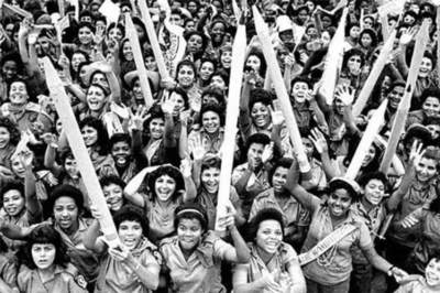 1961年12月,古巴人在哈瓦那革命广场庆祝识字运动闭幕游行。摄影:利博里奥·诺瓦尔