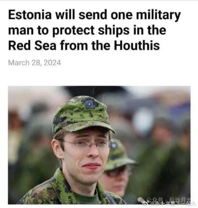 爱沙尼亚军队部署到红海(一个人也是部署),令欧洲大国震惊,毕竟,还得给他管饭。