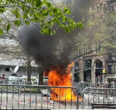 纽约警察迅速赶来灭火,该男子目前正在医院抢救,情况危险,生死未卜。