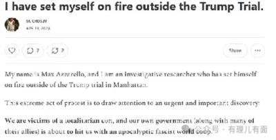 自焚者出事前在社交媒体写道:我在川普审判室外自焚了。