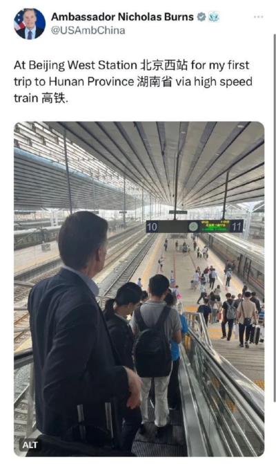 高铁对美国到底重不重要?看看美国的驻华大使伯恩斯,这一年来,他不断地在X(推特)上发布他在中国的高铁秀。