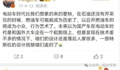 现在连电动汽车也被说成是“无用产业”了,而在2017年,同样是这些人,将电动汽车说成是新工业时代标志,但中国已经追不上了。
