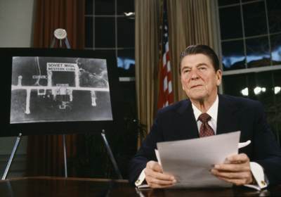 ▲1983年3月,里根总统在演讲中宣布了他的“战略防御计划” ,也被称为“星球大战计划”,旨在通过太空军备竞赛,将苏联经济拖垮。