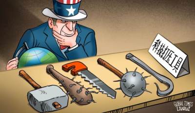 ▲中国人已经看穿了美国对他国进行科技打压的五大套路把式。(漫画丨刘蕊)