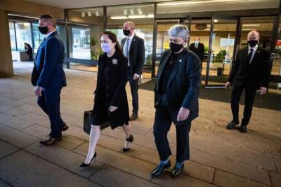 ▲2020年11月,华为CFO孟晚舟在加拿大出席引渡听证会,其间脚戴电子镣铐走出最高法院。