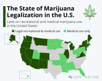 2012年,科罗拉多州成为美国第一个允许大麻用于娱乐休闲的州,短短几年里,大麻合法化州的名单越来越长。如今,全美现在已有38州将医疗用大麻合法化,另有24州将娱乐用大麻合法化。