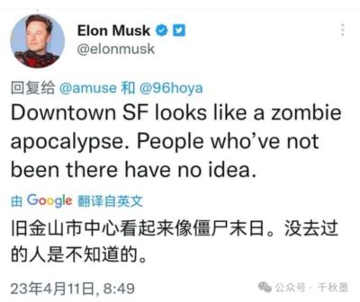 马斯克发文:旧金山市中心看起来就像“僵尸末日”,没去过的人是不知道的。