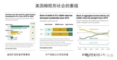随着美国社会阶层的日益固化,对于大多数失业者、底层劳动者和新移民来说,跨越阶层变得尤为困难。与此同时,精英群体凭借其广泛的社会网络、资本积累和信息获取能力,逐渐形成了一个相对封闭的“资本受益阶层”。这种社会分层的现象在美国中产阶级比例的缩减和贫富差距的扩大中淋漓尽致体现出来。