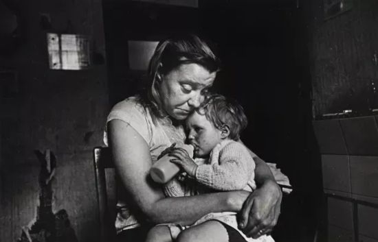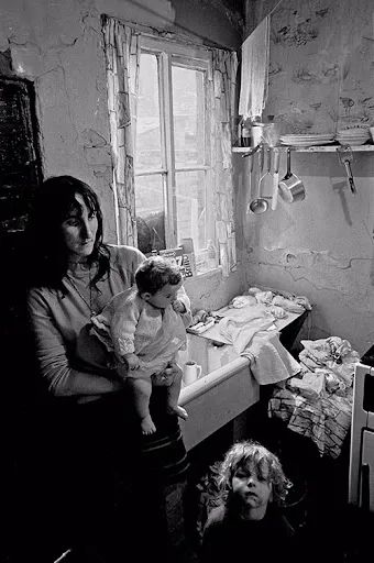 赫奇斯对他的拍照对象怀着尊重和同情。他拍摄的一个住在潮湿地窖中,怀抱婴儿的母亲,让人想起早年的绘画大师笔下的圣母圣子。只不过,这位圣母身陷绝望。她没有煤气,没有电,没有热水,没有卫生间。她在卧室的炉子上做饭。