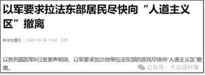 而且,以色列在6日发表声明,要加沙东部居民撤离后,仅过了几个小时,以军就对拉法东部地区发动空袭,压根都没给加沙居民多少撤离时间。