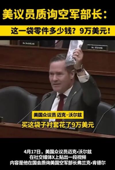 浪费严重。一个是官僚机制所必然带来的低效与浪费,比如之前美国议员讲的九万美元衬套,美国空军1200美元的咖啡壶,为什么这么贵?因为这个是专用的,这个是经过相关部门、单位认证过的,是走过无数的流程,你说亚马逊上有10美元同款的,问题是,亚马逊上的,它走过流程吗?没有你敢买?出了问题算谁的?在欧美国家的政务官-事务官体系下,广大事务官们不出错,然后给自己争取最大的利益才是最重要的,政务官(政客)天天换,跟我有什么关系?