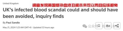 5月20日,英国终于揭开了这起拖延四十余年的“血液污染大丑闻”的终极真相。报告披露,这并非是场意外!