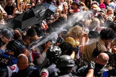 ▲2024年4月,美国警察向得克萨斯大学抗议者使用胡椒喷雾剂。