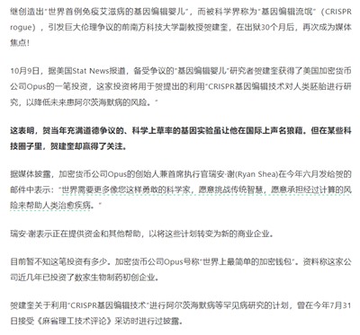 之所以说会迟早发生,是因为之前就有媒体报道,在他出狱之后就有海外富豪资助他研究阿兹海默症,出狱后在国内他依然绕开了法律的部分限制,主导了部分研究。更早还有传闻,基因编辑婴儿事件本身就有海外利益方参与。这也很符合他的背景,所以在中国身败名裂的他,选择去海外进行他的疯狂实验,一点都不奇怪。