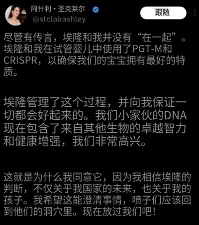 最近关于基因编辑的传闻还有几个。前些日子马斯克又多了一个孩子,然后推特上有传闻说上一个孩子(第十三个)是进行过基因编辑的;openai的山姆奥特曼最近也得到了他的孩子。他是同性恋者,这个孩子是代孕产物,也有传闻说这个孩子出生前进行了基因编辑。